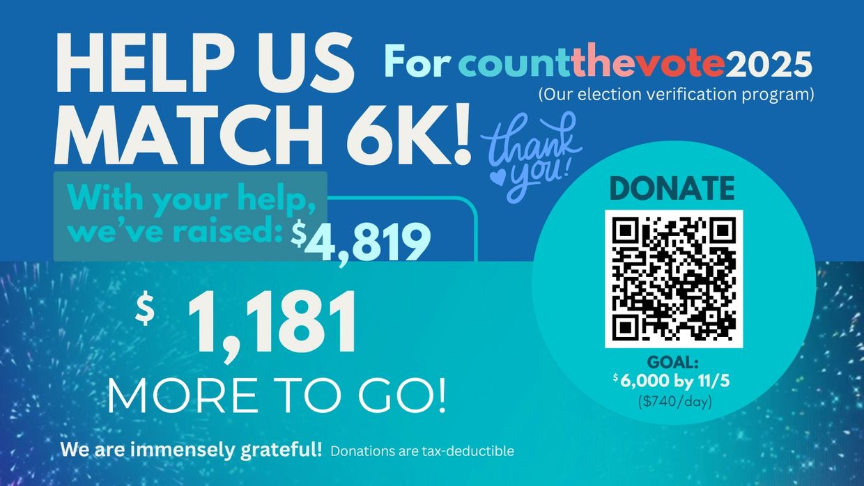 We have a $6,000 matching funds grant in place right now to help us raise funds to hire an organizer to more fully observe ongoing elections.